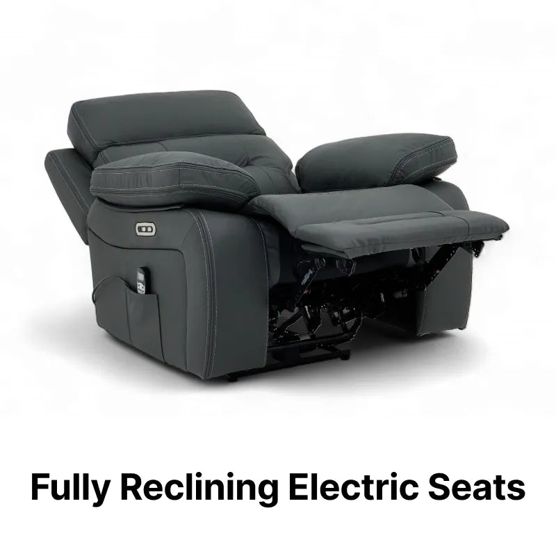 Electric Recliner Chair In Grey Real Leather | Hi-Tech Cinema Seat with Power Headrest, Massage, Power Recliner & USB Charging Button | Grey Real Leather | Sicily