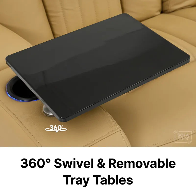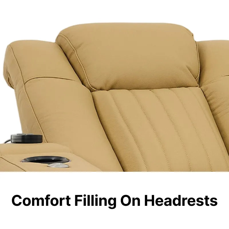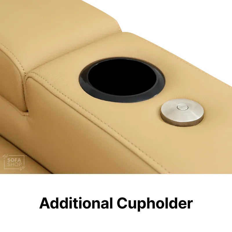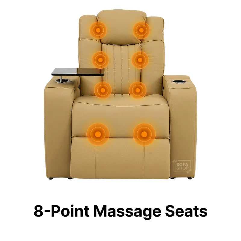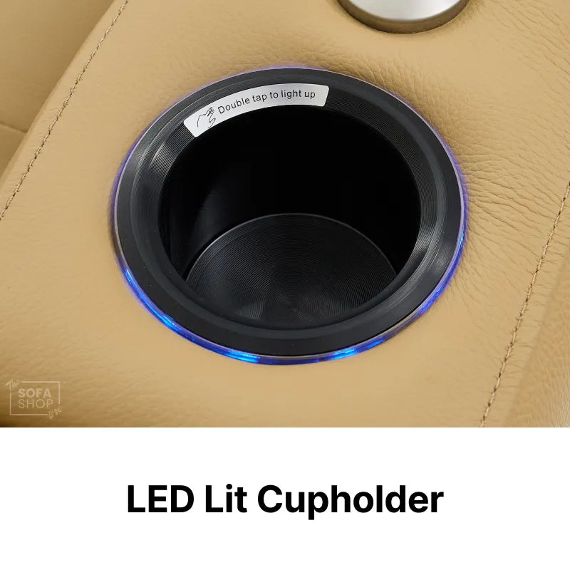 The Capri Electric Recliner Cinema Chair in Tan Genuine Leather offers all the smart features of a full sofa suite in a single luxury seat. Perfect as a standalone power chair or as part of a larger Capri set, this leather recliner chair is equipped with USB charging, wireless charging, cooled cup holders, storage, LED lighting, and even a built-in massage function.