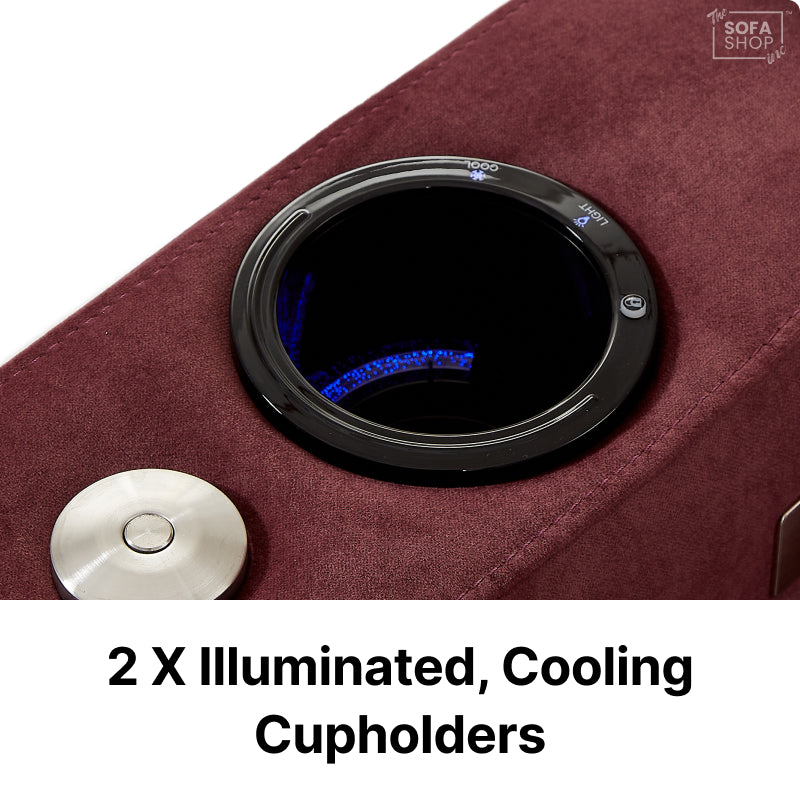 Yes – the chair features LED cup holders, while the 2 seater includes cooling cup holders.