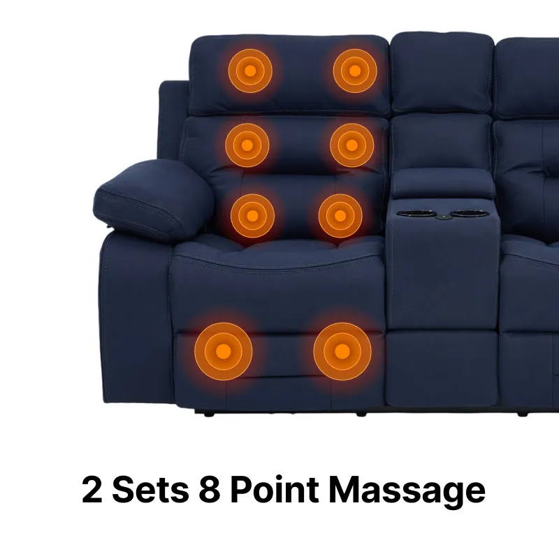 Transform your space with the Sicily 2-Seater Recliner Sofa with Console (Blue Resilience Fabric). Enjoy the perfect mix of luxury, technology, ergonomic comfort, and integrated massage.