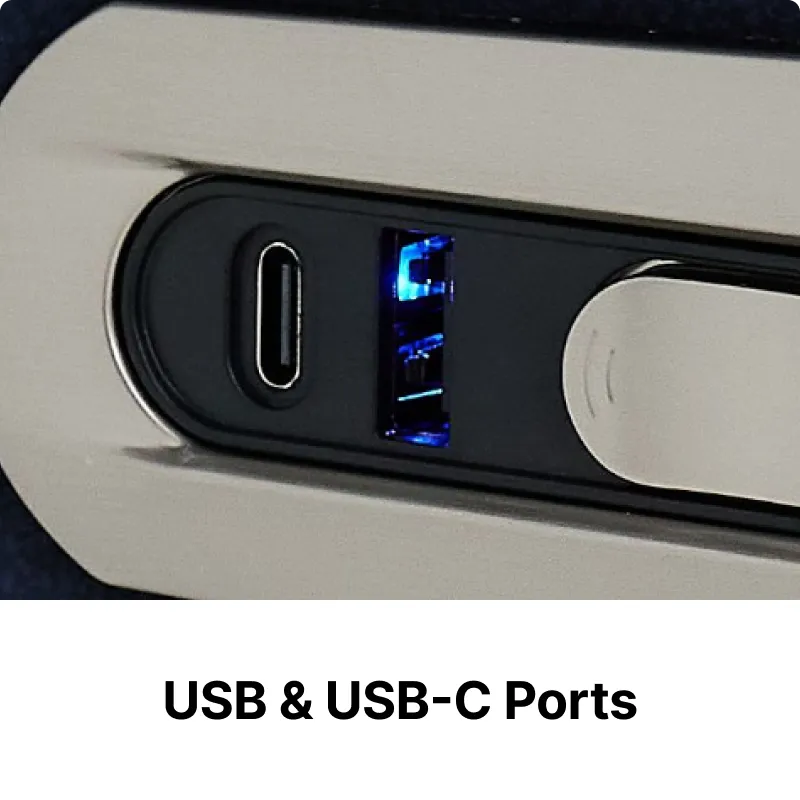 USB Charging Ports & Power Socket – Charge your phone, laptop, or tablet from the sofa