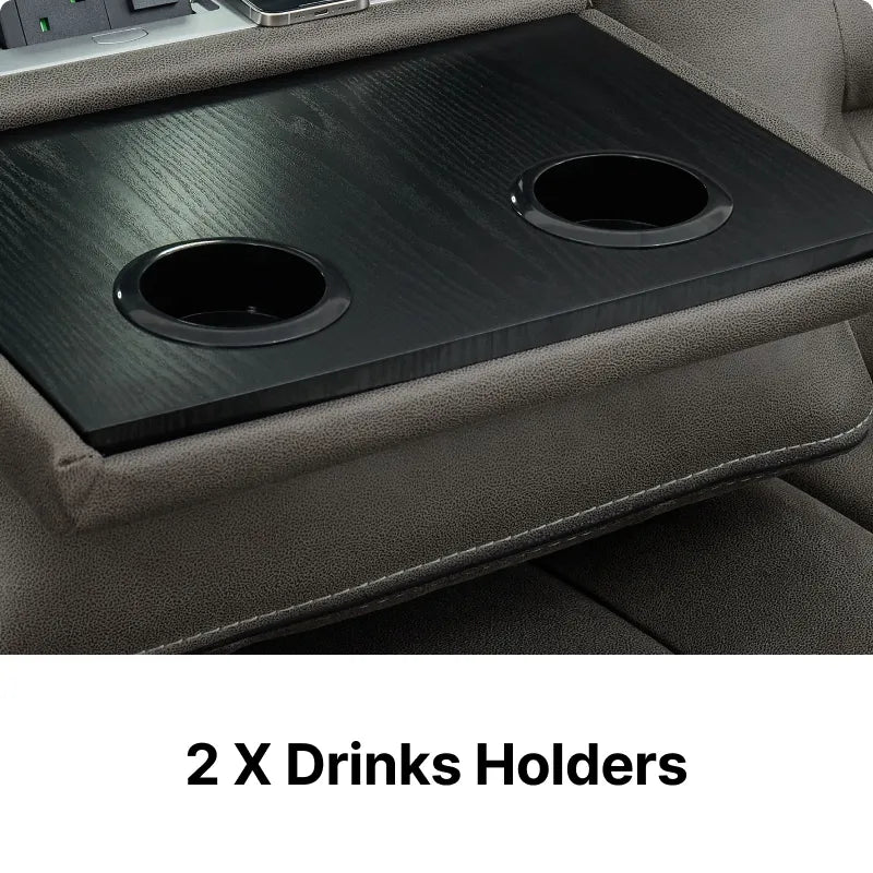 Drop-Down Table with Black Cup Holder – Convenient space for drinks and devices