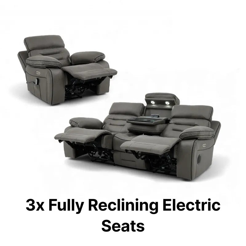 Bring the luxury of cinema seating into your home with the Tuscany 3+1 Electric Reclining Sofa Package. Designed for ultimate relaxation, this 2-piece sofa set includes a 3-seater sofa and a matching reclining chair, both upholstered in high-quality Grey Resilience Fabric. Whether you’re enjoying a movie night, gaming, or simply unwinding, this cinema sofa package offers unmatched comfort with power reclining, Bluetooth speakers, and LED lighting to elevate your home entertainment experience.