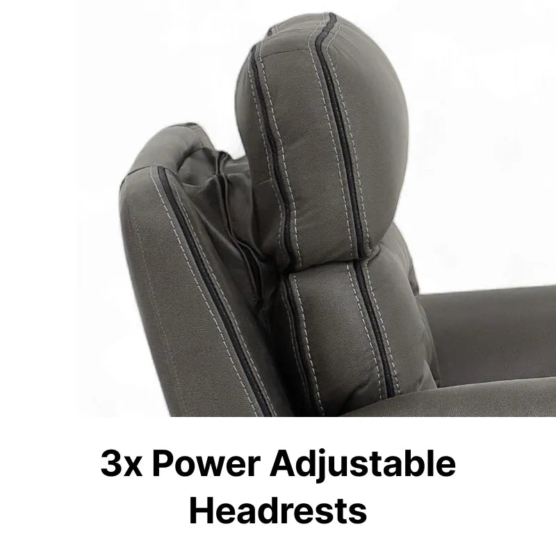 Fully Adjustable Support – Power recline and adjustable headrests across the set; massage on chair only