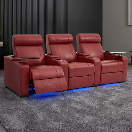 3 Seat Real Leather Electric Recliner Home Cinema Theatre Sofa In Red With Chilled Cupholders. . .