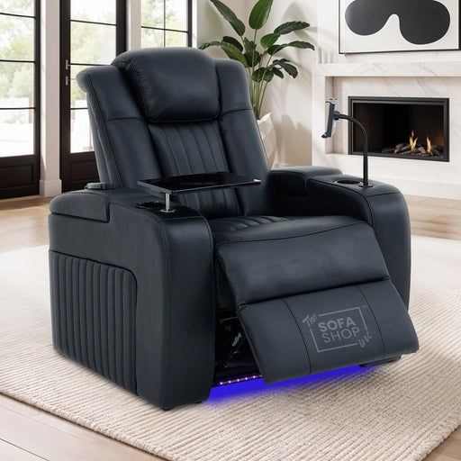 Luxury Real Leather Smart Recliner Chair with Massage, Heat & Power Grommet – Capri 1-Seater Black The Ultimate Home Cinema Experience The Capr...