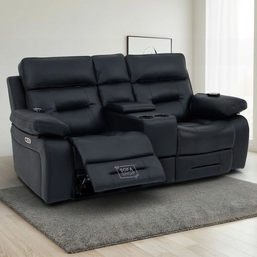 2 Seat Electric Recliner Home Cinema Sofa | Fabric Couch In Grey + Chilled Cupholders + Console + Power Sockets + USB | Vinsonova | Sofa Shop The U...