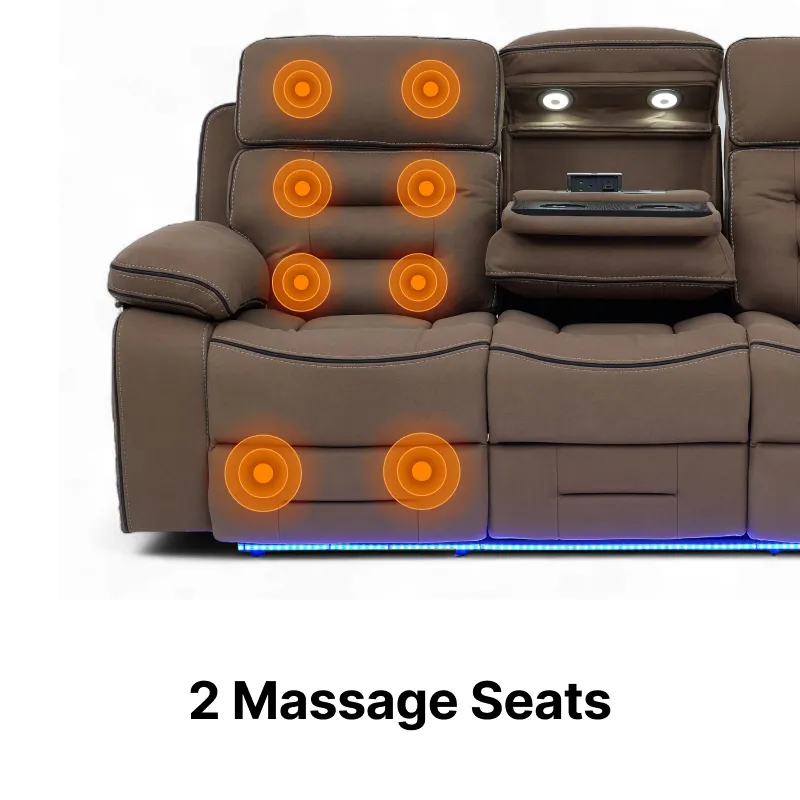 3 Seater Electric Recliner Cinema Sofa in Brown Fabric | Hi-Tech Sofa With Massage, Fold-Down Table, Bluetooth Speakers, LED Lights & Power Headrest | Tuscany | The Sofa Shop