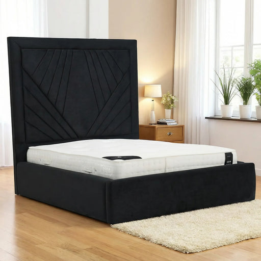 Premium Grey Velvet Upholstery & Geometric Panel Design Instantly elevate your bedroom with this Luxurious Grey Ottoman Storage Bed Frame. Wrap...