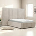 Beneath its plush upholstery lies a solid wood subframe designed for stability and longevity. The sprung slatted platform provides a supportive foundation for any mattress—gel memory foam, pocket spring, or hybrid—ensuring even weight distribution and enhanced comfort. Polished metal reinforcements at key stress points guarantee daily durability, while the low-profile side rails and footboard complete the clean-lined aesthetic.