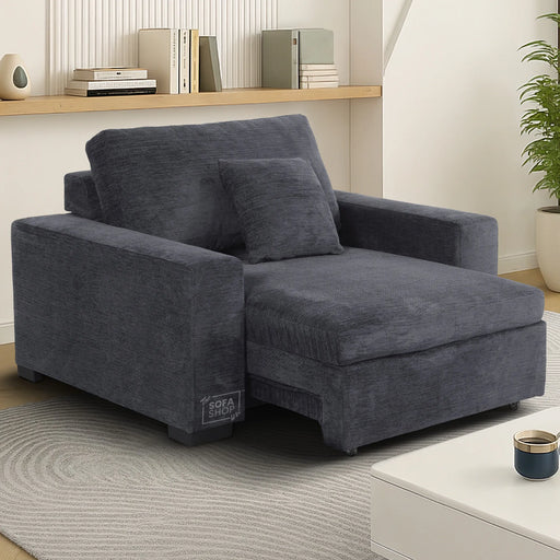 Extendable Electric Sofa Bed Chair in Grey Chenille Fabric | 1 Seater Hi-Tech Sliding Couch. . .