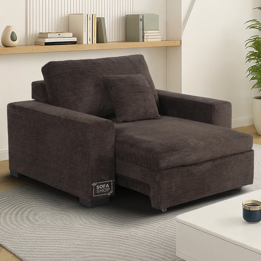 Extendable Electric Sofa Bed Chair in Brown Corduroy Fabric | 1 Seat Home Cinema Couch. . .