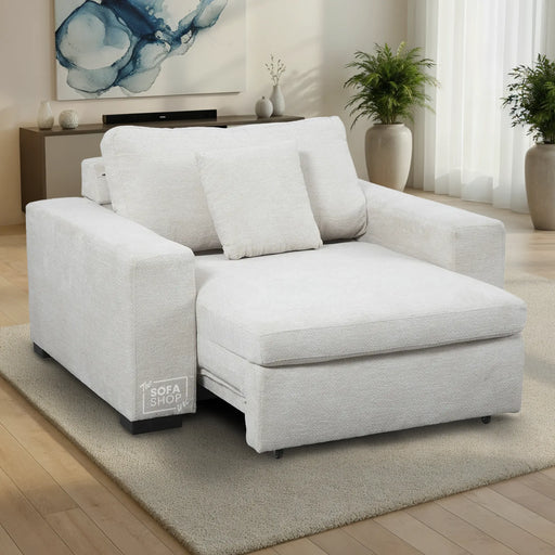 Extendable Electric Sofa Bed Chair in Cream Chenille Fabric | 1 Seat Power Sliding Sofa. . .