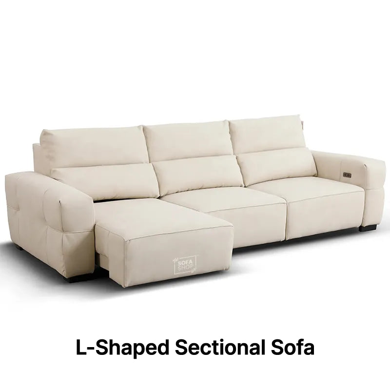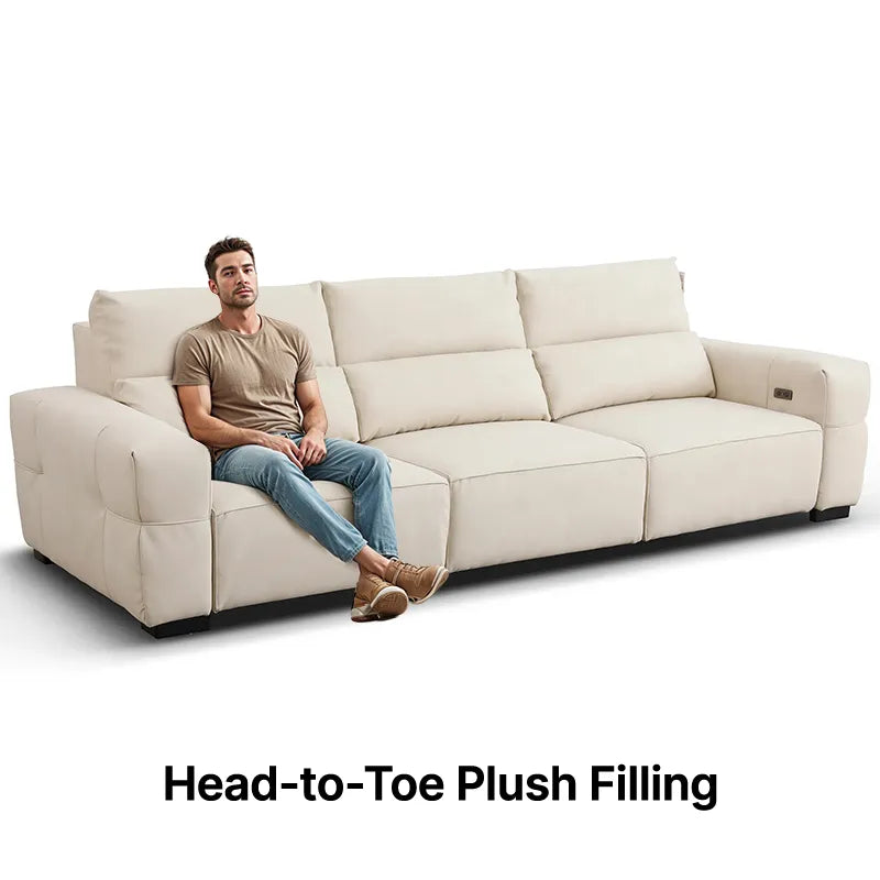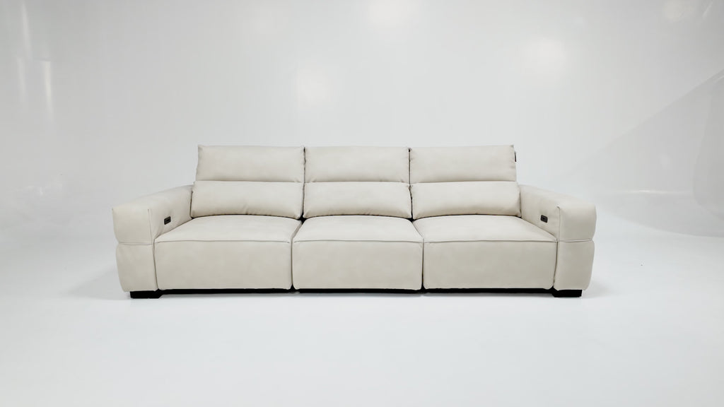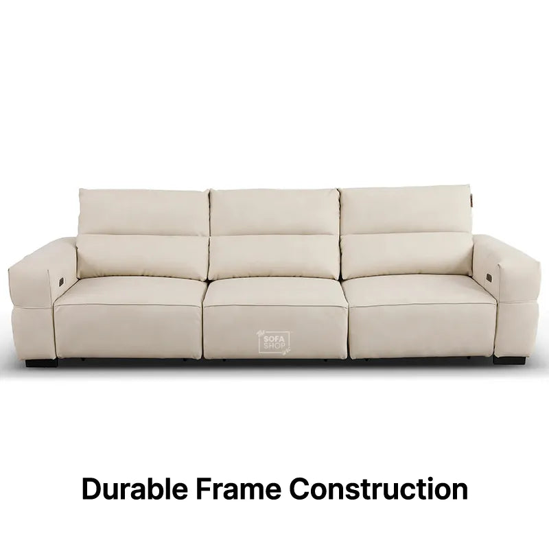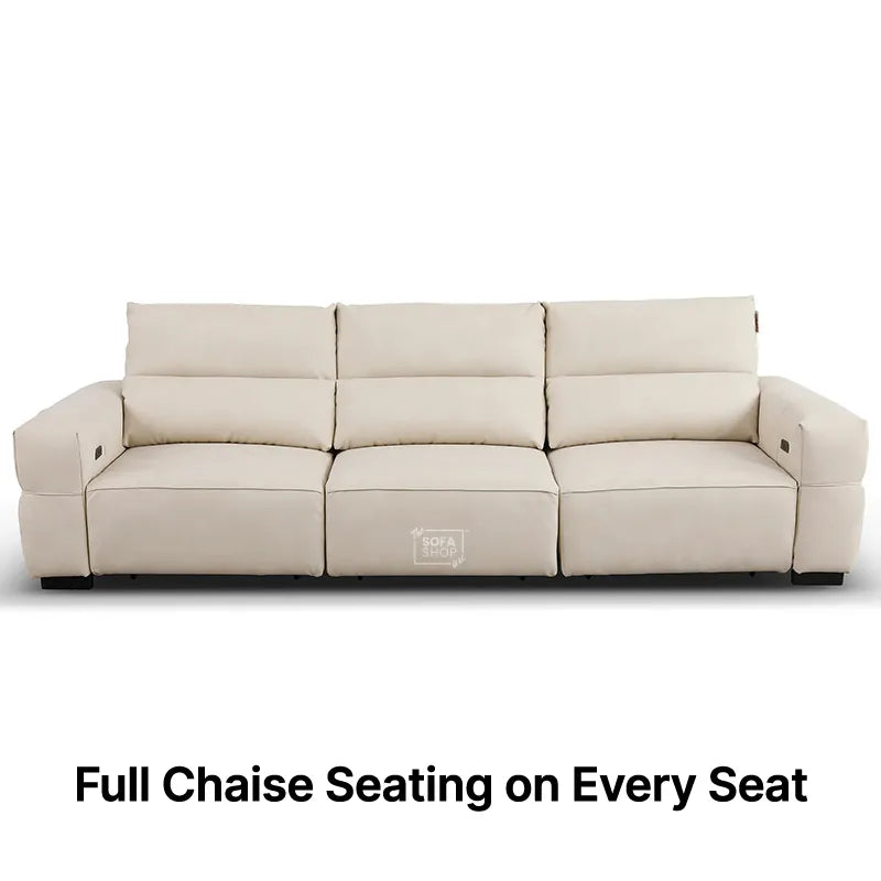 Meet Murcia: an elegant Extendable Electric Sofa Bed in soft cream resilience fabric. With a smooth power slider, USB and USB-C charging and comfort headrests, this 3 seater Power Sliding Couch moves from daytime lounging to overnight ease in seconds.