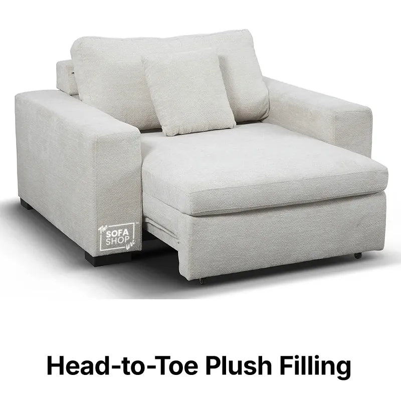 Meet Palma, a compact Extendable Electric Chair Bed in soft cream chenille fabric. With a smooth power slider, USB and USB-C charging and extra cushions for flexible comfort, this Power Sliding Chair moves from daytime lounging to a ready sleep surface in seconds.