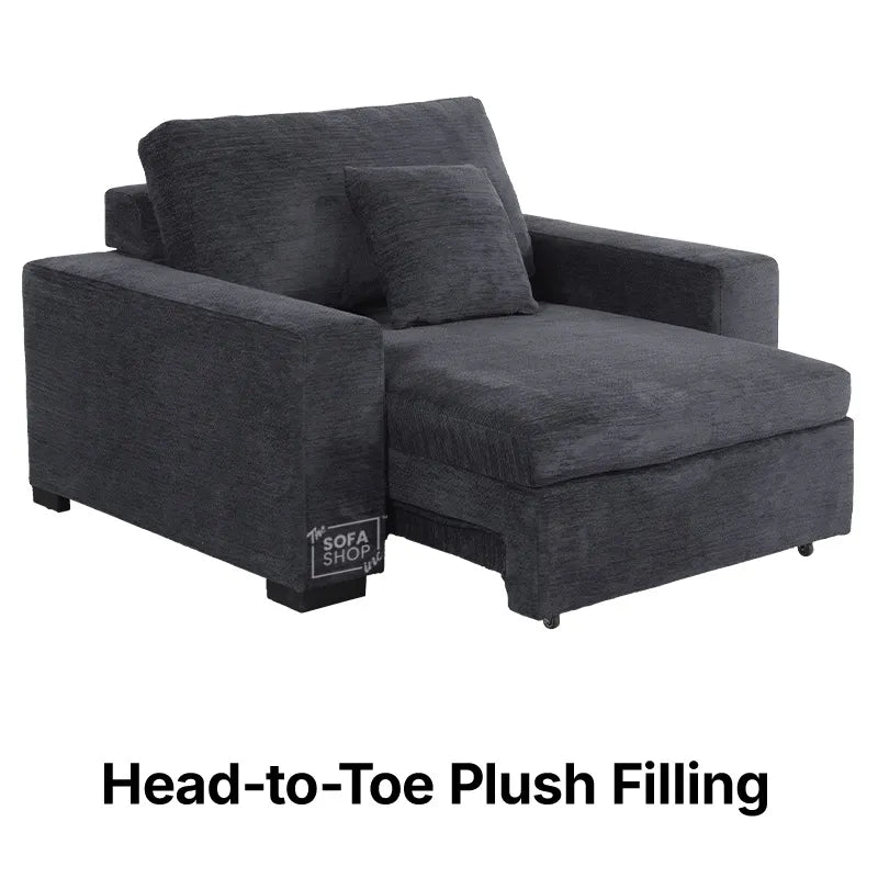 Meet Palma, a compact Extendable Electric Chair Bed in soft grey chenille fabric. With a smooth power slider, USB and USB-C charging and extra cushions for flexible comfort, this Power Sliding Chair moves from daytime lounging to a ready sleep surface in seconds.
