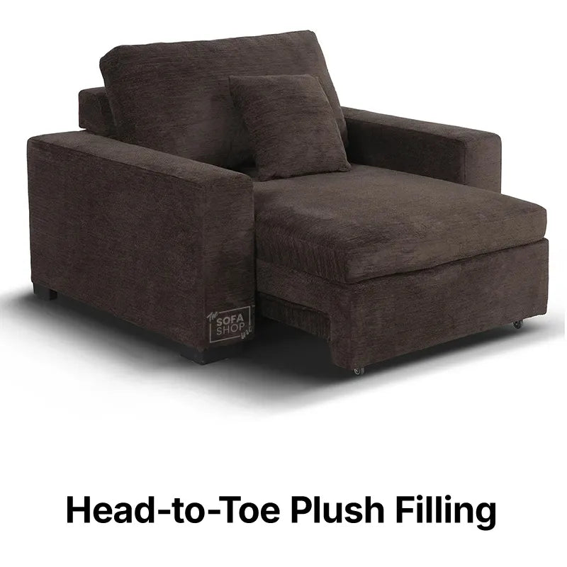 Meet Palma, a compact Extendable Electric Chair Bed in rich brown Corduroy fabric. With a smooth power slider, USB and USB C charging and extra cushions for flexible comfort, this Power Sliding Chair converts from daytime lounging to a ready sleep surface in seconds.