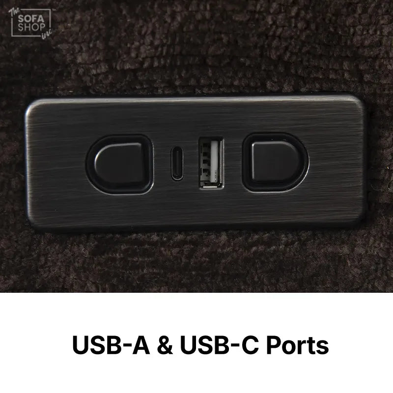 USB and USB C charging keeps phones and tablets powered from the smart chair