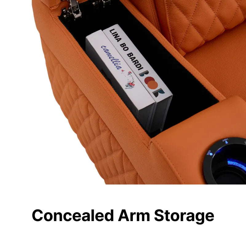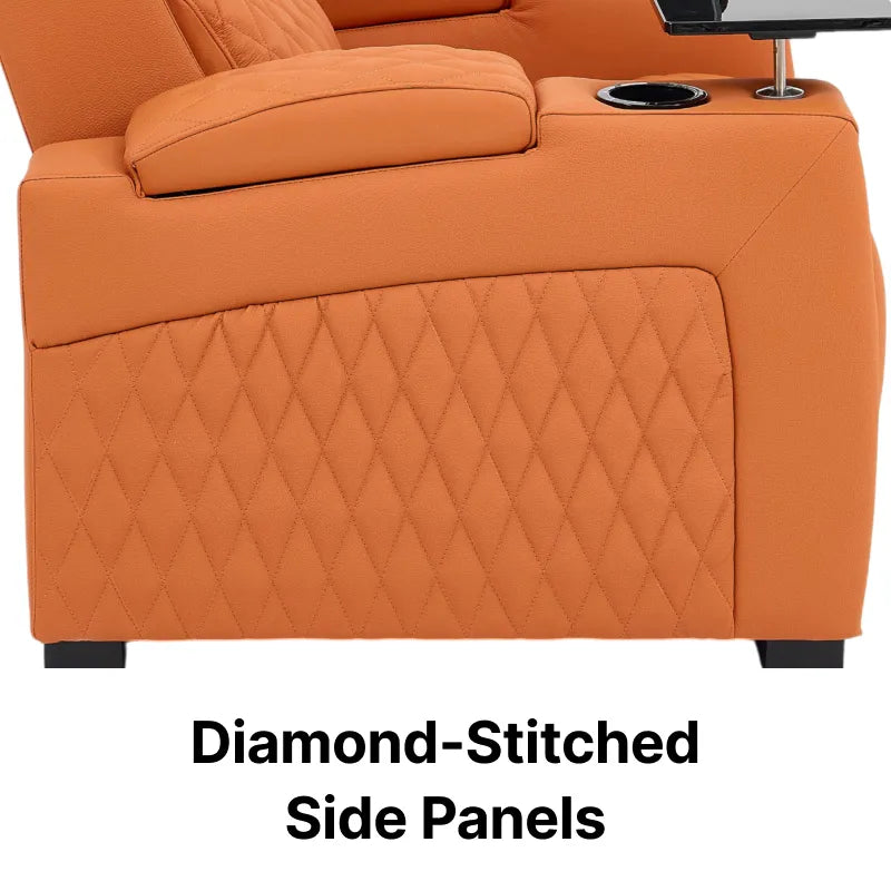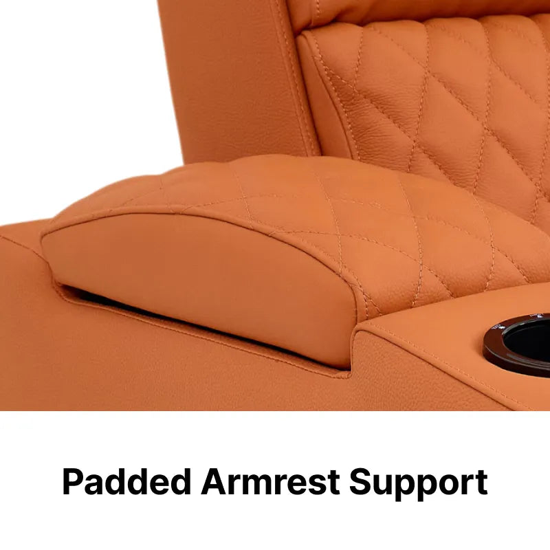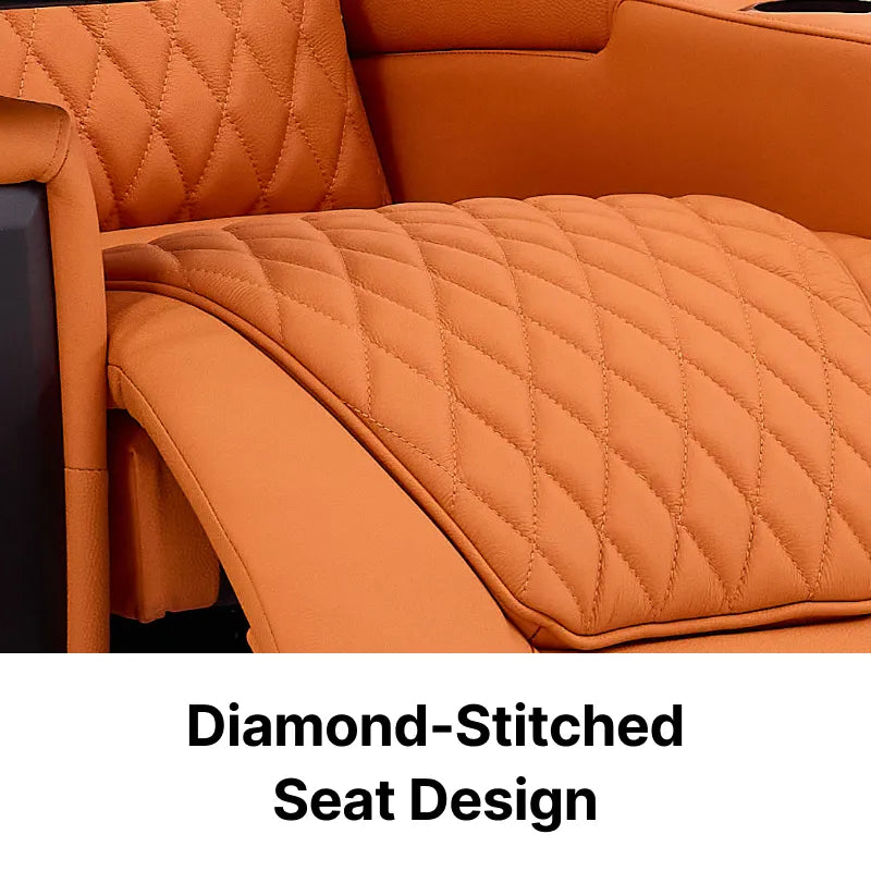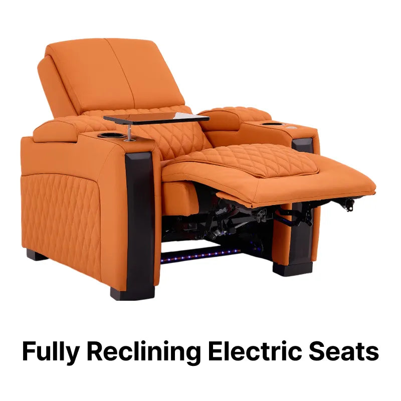 Join the 30,000+ UK homeowners who have abandoned the ordinary. Wrapped in a vibrant, prestigious orange hide, this chair is more than a seat; it is a high-tech command station. Discover why this Real Leather Cinema Sofa is the definitive choice for those who demand an uncompromising blend of bold aesthetics and orthopaedic science.