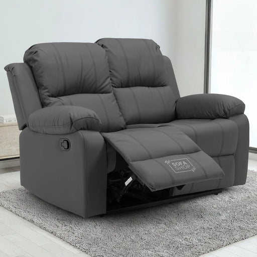 2 Seater Leather Recliner Sofa in Grey | Practical Manual Reclining Sofa with Fully Reclining. . .