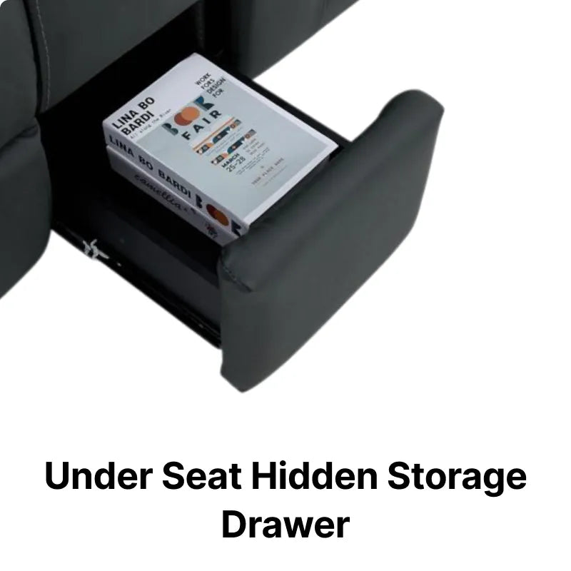 Upholstered in sleek grey top-grain genuine leather, this Smart Sofa blends seamlessly into living rooms, entertainment areas, and home cinema setups. The built-in centre console adds convenience with cup holders and hidden storage, keeping everything within easy reach.