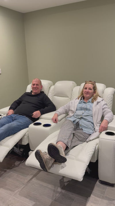 With power recliners, massage function, power headrests, LED reading lights, USB charging, and hidden storage, the Napoli blends striking design with smart functionality for the ultimate entertainment experience.