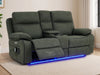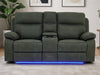 2 Seater Hi-Tech Sofa | Electric Recliner Home Cinema Seat in Green Fabric with Massage + Chilled Cupholders + Console + Power Sockets + USB | Vinsonova