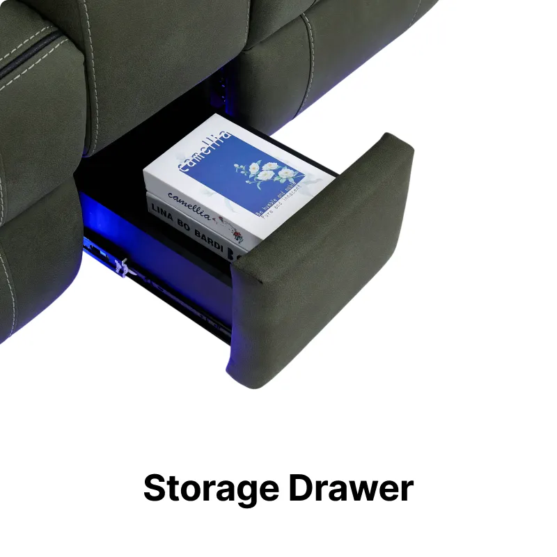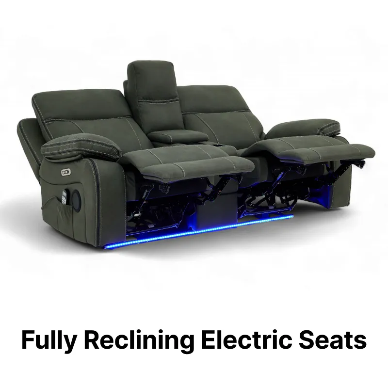 Upholstered in premium green resilience fabric, this high-tech home cinema couch combines plush comfort with advanced features, making it the perfect addition to modern living spaces. Whether you're watching a blockbuster, gaming, or working from home, this fabric recliner sofa delivers exceptional comfort, smart technology, and effortless convenience.