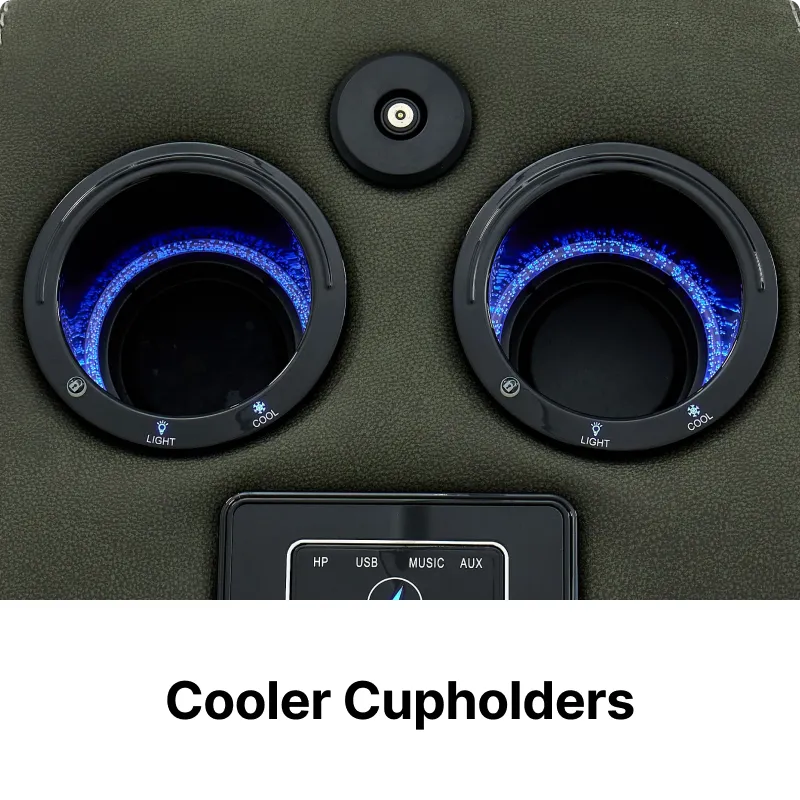 2 Cooler Cupholders – Console-mounted chilled holders (with LED) to keep drinks cold.