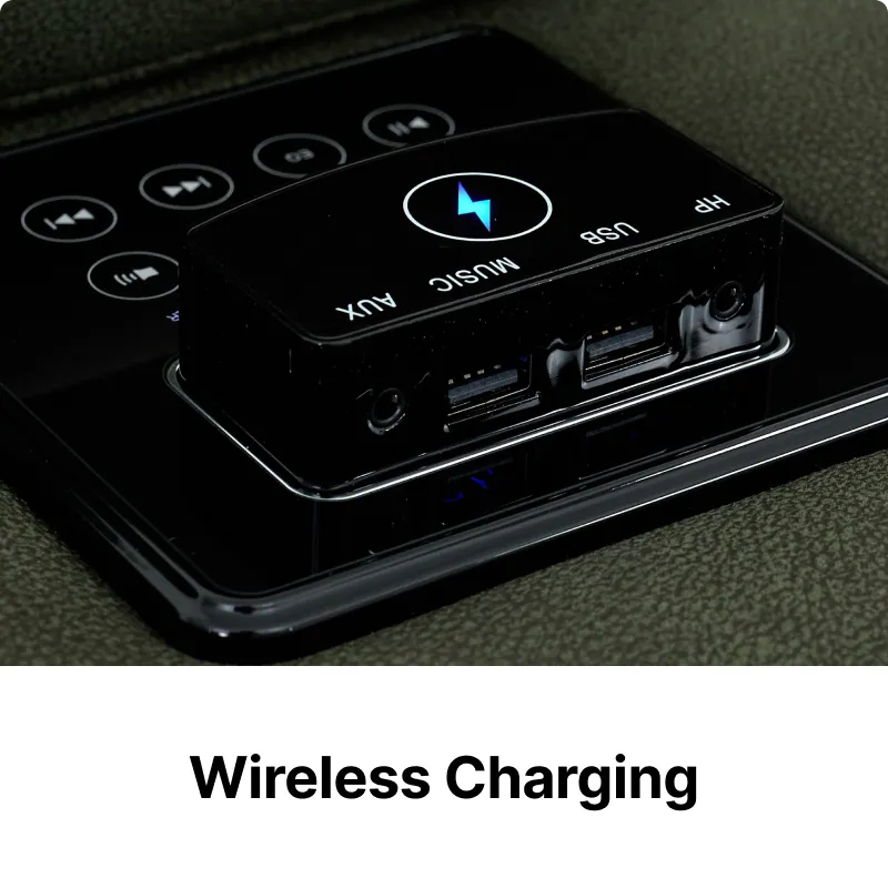 Bluetooth Speaker with Wireless Charging – Integrated console audio with a built-in Qi pad for cable-free phone charging.