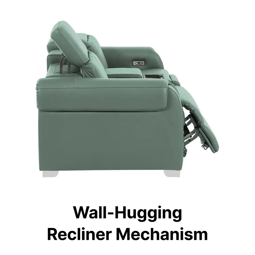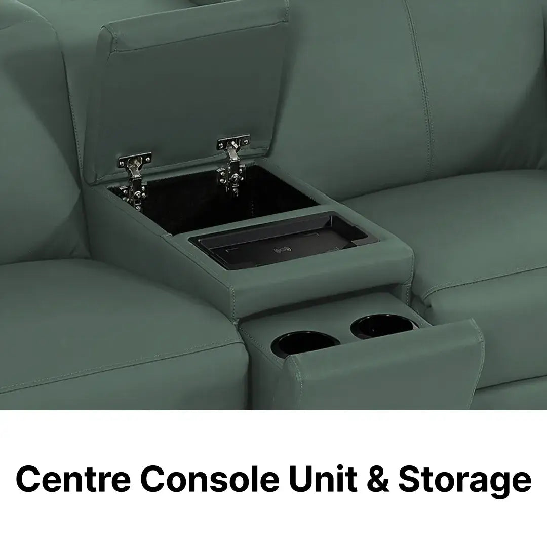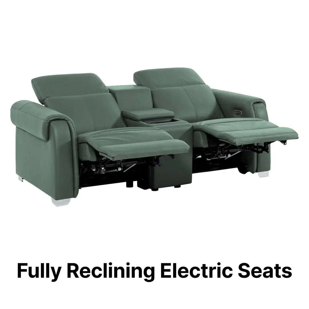 2 Seater Real Leather Electric Recliner Sofa | Cinema Sofa | Hi-Tech Sofa in Green with Massage, Middle Console, Adjustable Headrests & USB | Turin