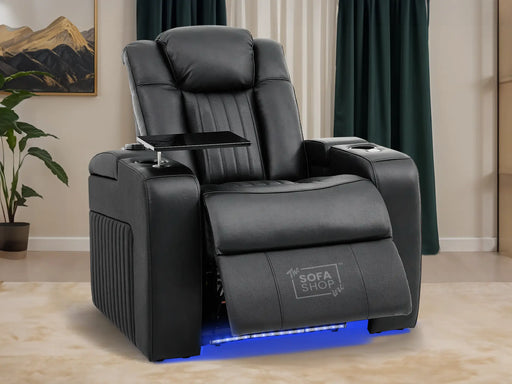 Real Leather Cinema Recliner Chair In Black | Power Seat with USB Charging, Electric Reclining,. . .