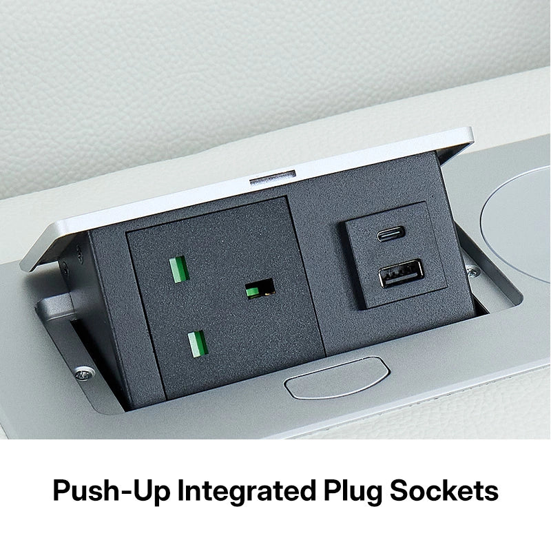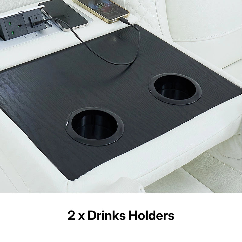 • 2x Power Recliners – Smooth, silent reclining, with integrated USB & USB-C ports in the control buttons