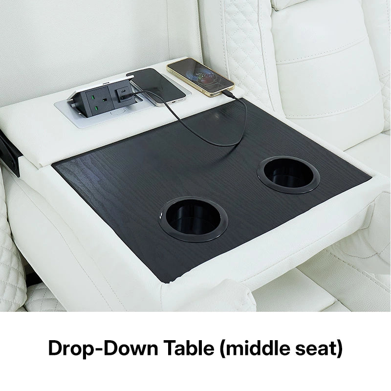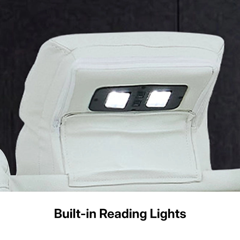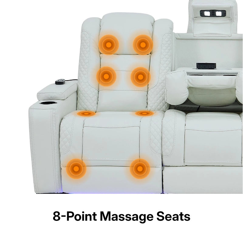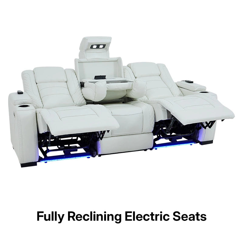 3 Seater Real Leather Electric Recliner Cinema Sofa with Fold-Down Table, Massage, Led Lights, USB-C Ports, Storage & Cupholders | White Genuine Leather | Napoli