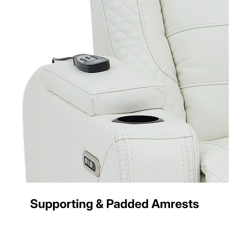 The Napoli 3-Seater Smart Recliner Sofa is a statement piece for those who demand elegance, comfort, and cutting-edge technology. Upholstered in stunning white genuine leather, this home theatre seating transforms any space into a premium cinematic retreat.