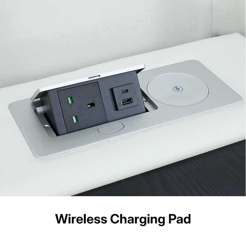 • Multiple Charging Options – USB, USB-C, power sockets, and a wireless charging pad built-in