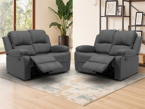 2+2 Recliner Sofa Set in Dark Grey Fabric | 2 Piece Fabric Sofa Set with. . .