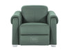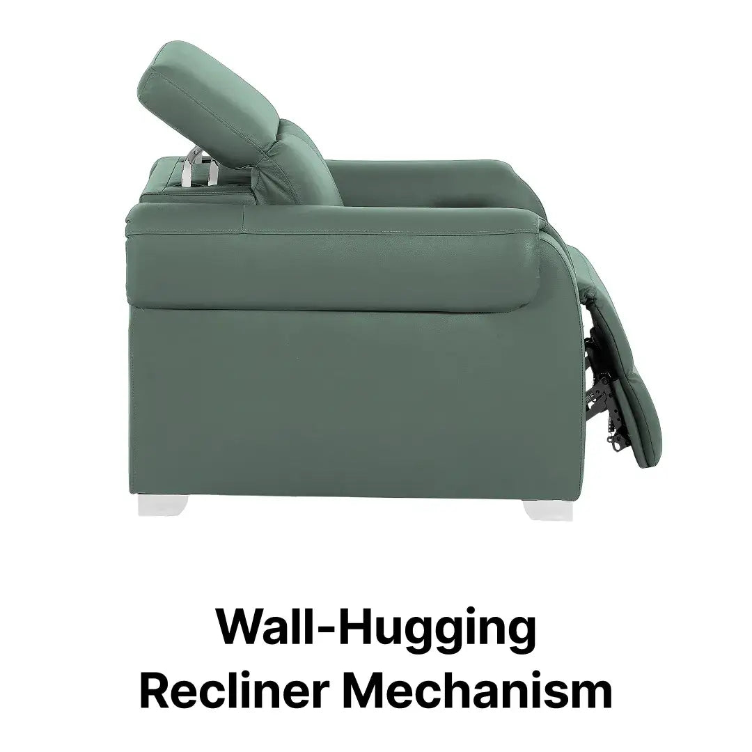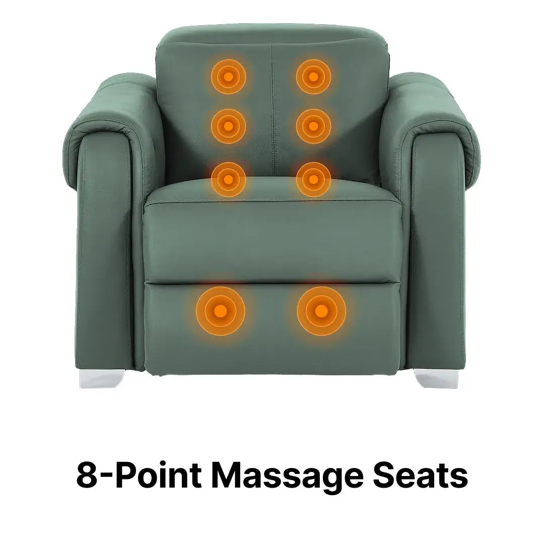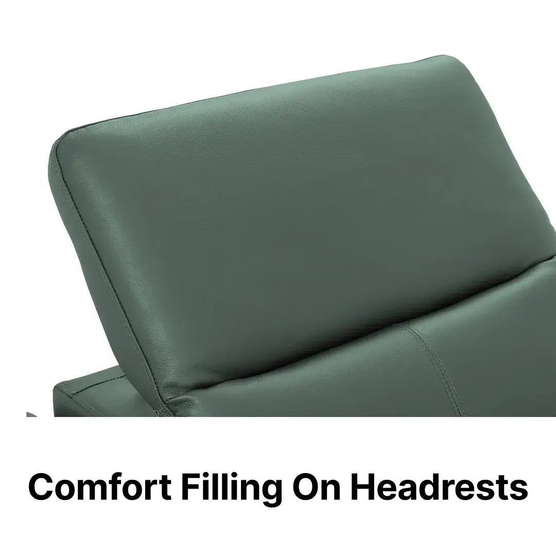 The Turin Real Leather Electric Recliner Chair turns any corner into a personal home cinema chair. Wrapped in green top-grain real leather, it blends power recline, massage, USB charging, power headrest, and supportive lumbar design — a compact, hi-tech power recliner chair that looks as good as it feels.