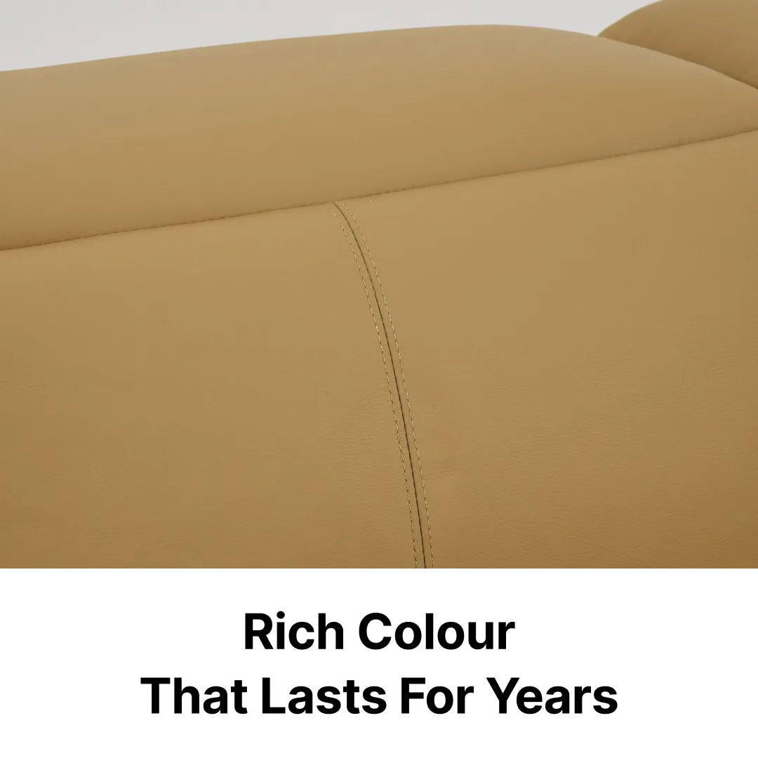 The Turin Real Leather Electric Recliner Chair turns any corner into a personal home-cinema seat. Wrapped in tan top-grain real leather, it blends power recline, massage, USB/USB-C charging, power headrest, and supportive lumbar design — a compact, hi-tech recliner that looks as good as it feels.
