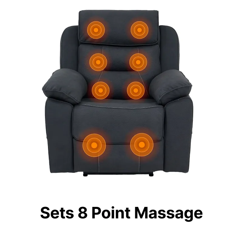1 Seat Electric Recliner Chair Home Cinema Sofa | Fabric Chair In Charcoal Grey | Hi-Tech Chair with Massage, Heating, Padded Armrests, USB & Power Headrest | Florence