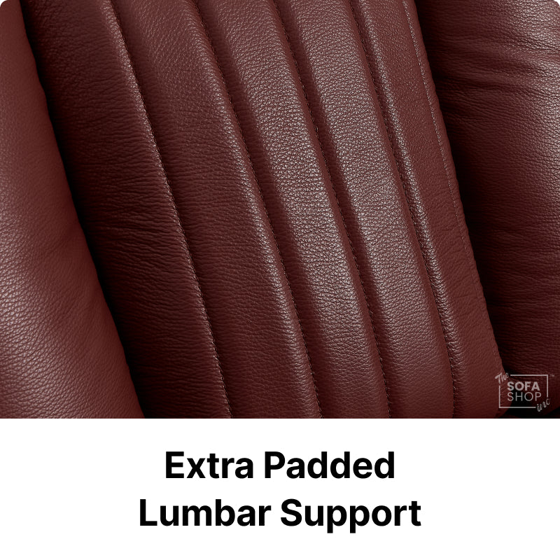 The Capri Recliner Chair is wrapped in top-grain red leather, offering a rich, vibrant look with exceptional durability. Unlike synthetic alternatives, real leather develops a unique patina over time, making it even more elegant with age.