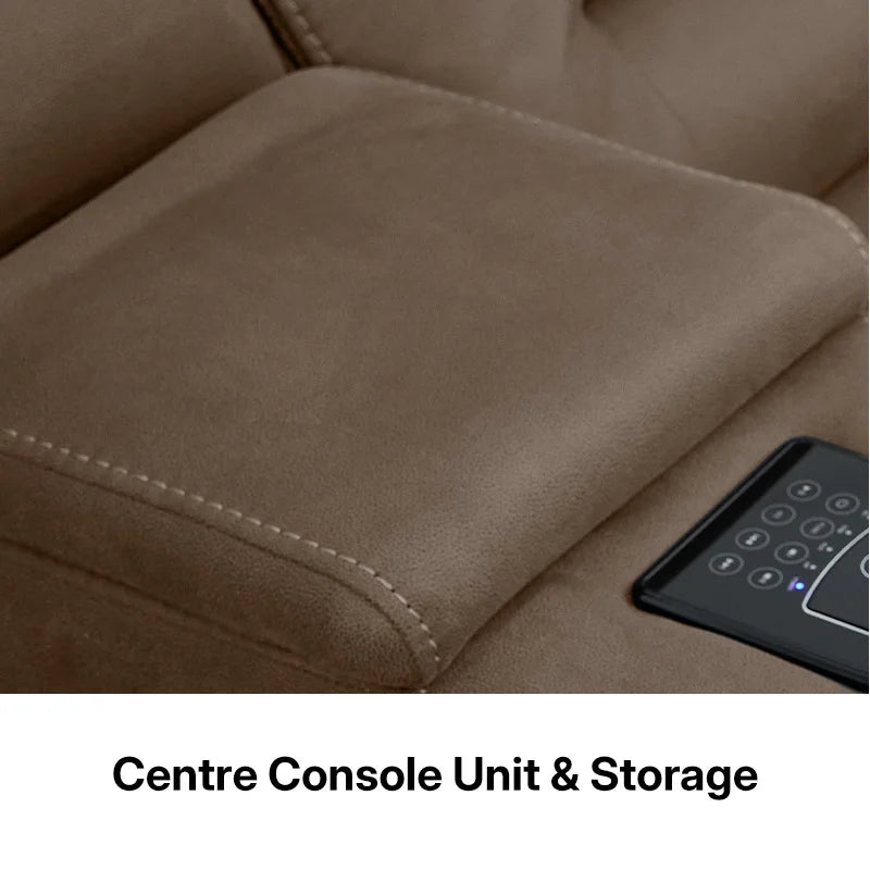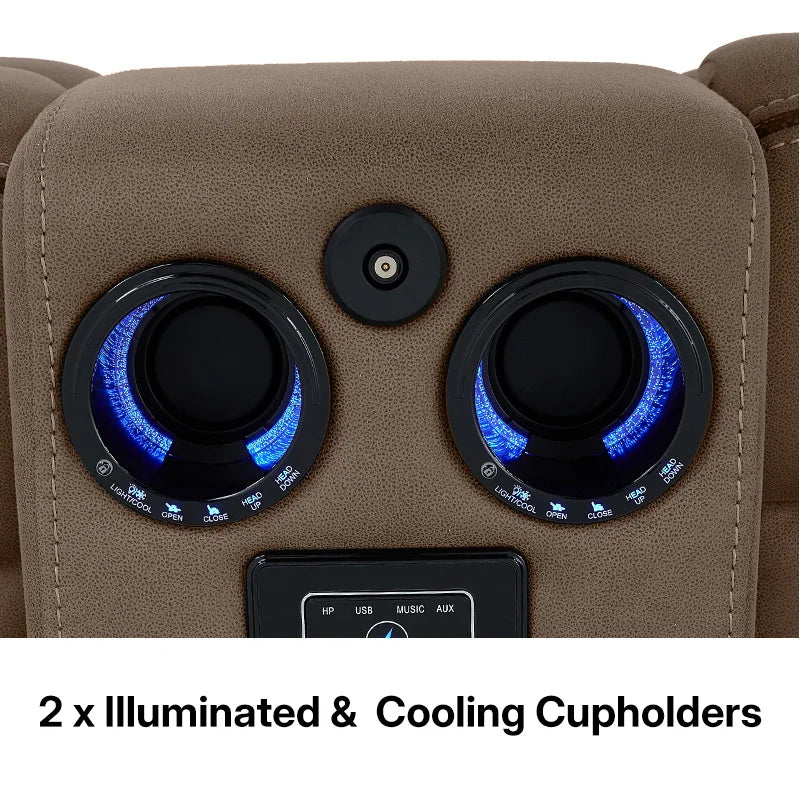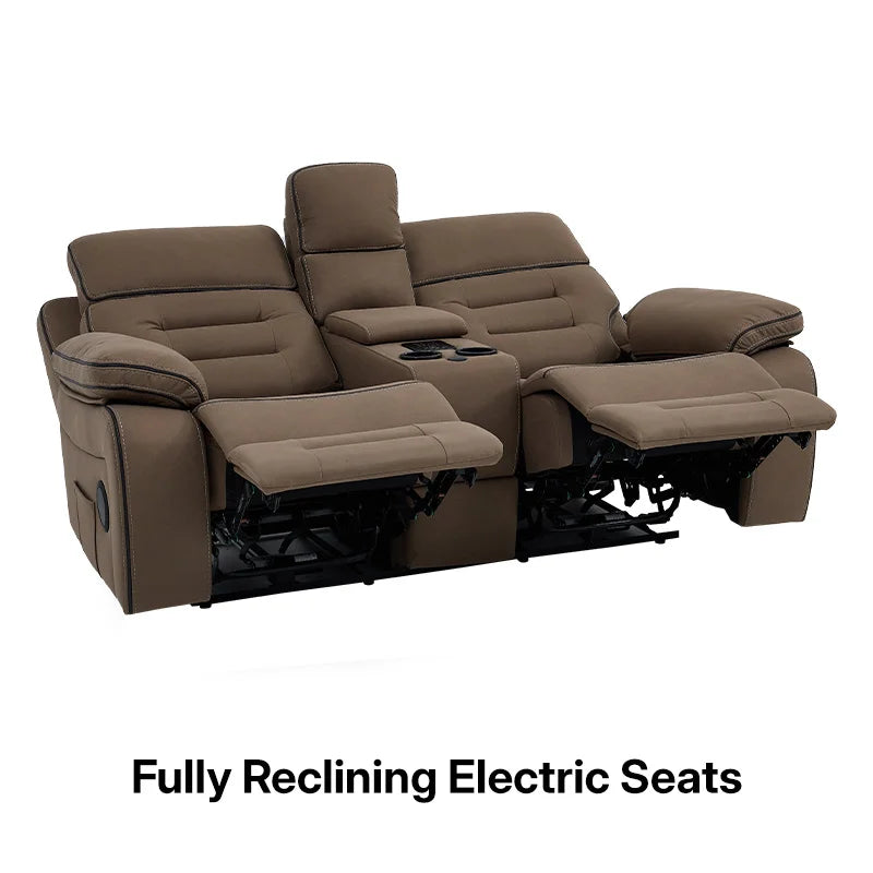 Modern 2+1 Electric Recliner Cinema Sofa Set in Stylish Brown Resilience Fabric — Comfortable 2-Piece Cinema Sofa With LED Cup Holders, Massage & Storage | Tuscany