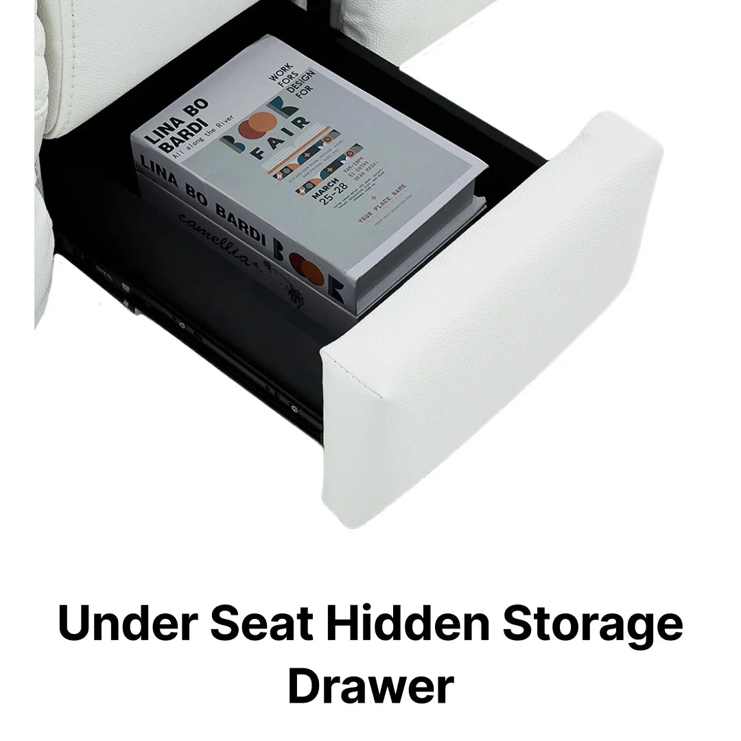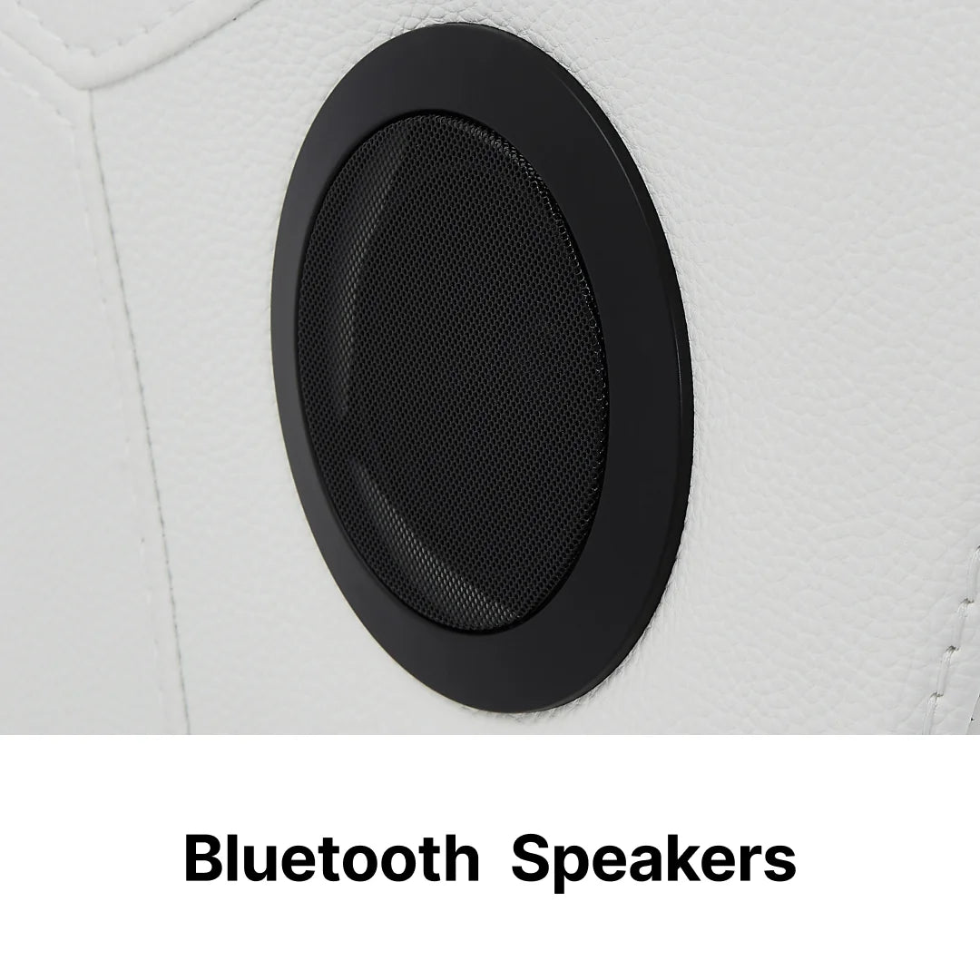 To maintain the Napoli's sleek, luxurious white aesthetic, we removed the bulky, outdated plastic control panels. The Bluetooth system pairs seamlessly with your smart TV or phone, and all audio functions are intelligently integrated directly into the smooth Wireless Charge Plate area on the central console.