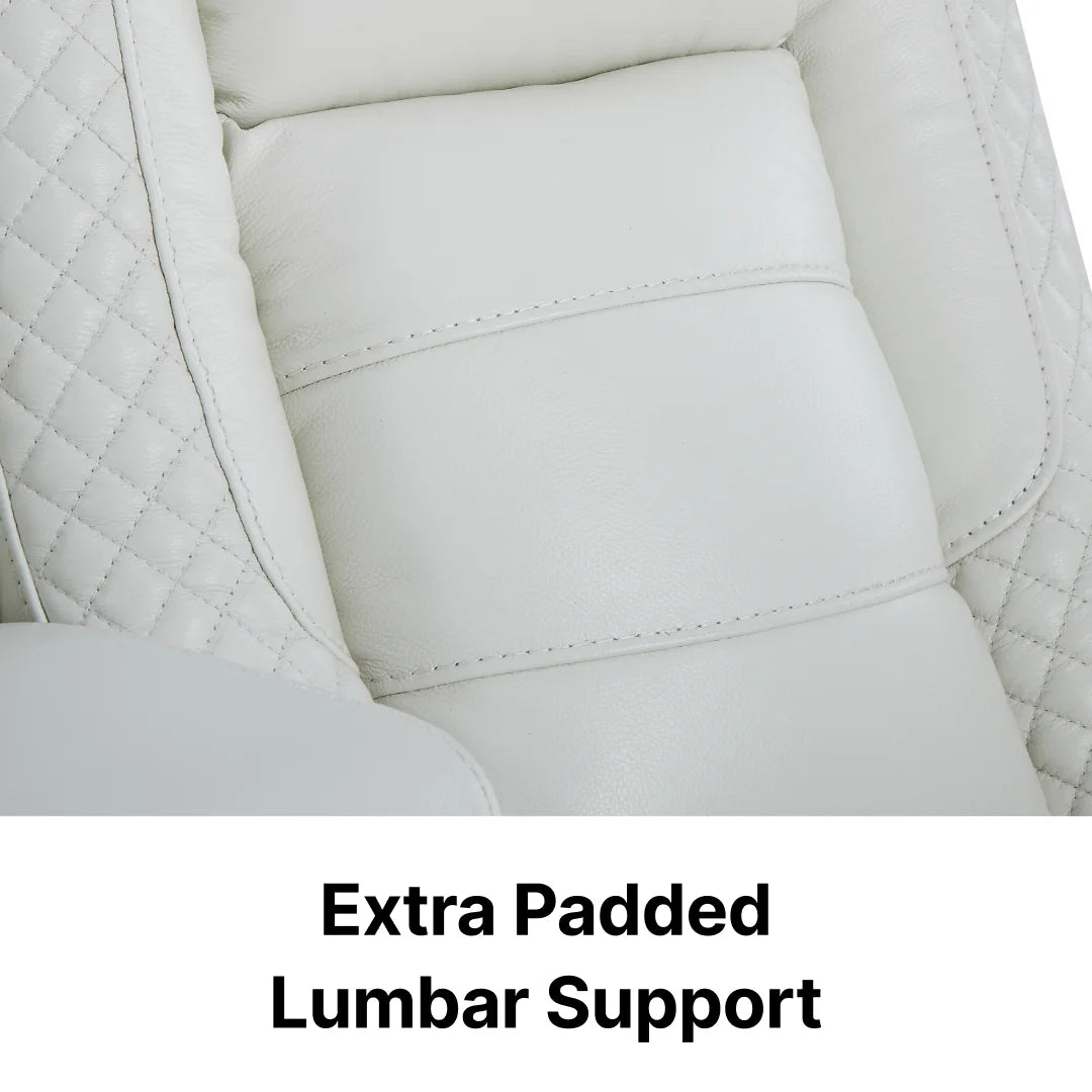 Wrapped in genuine white leather, the Napoli makes an immediate visual statement. Its clean, contemporary silhouette elevates any modern interior, while the orthopaedic recline system quietly does the harder work — supporting your spine, relieving tension, and keeping your body comfortable through hours of use.