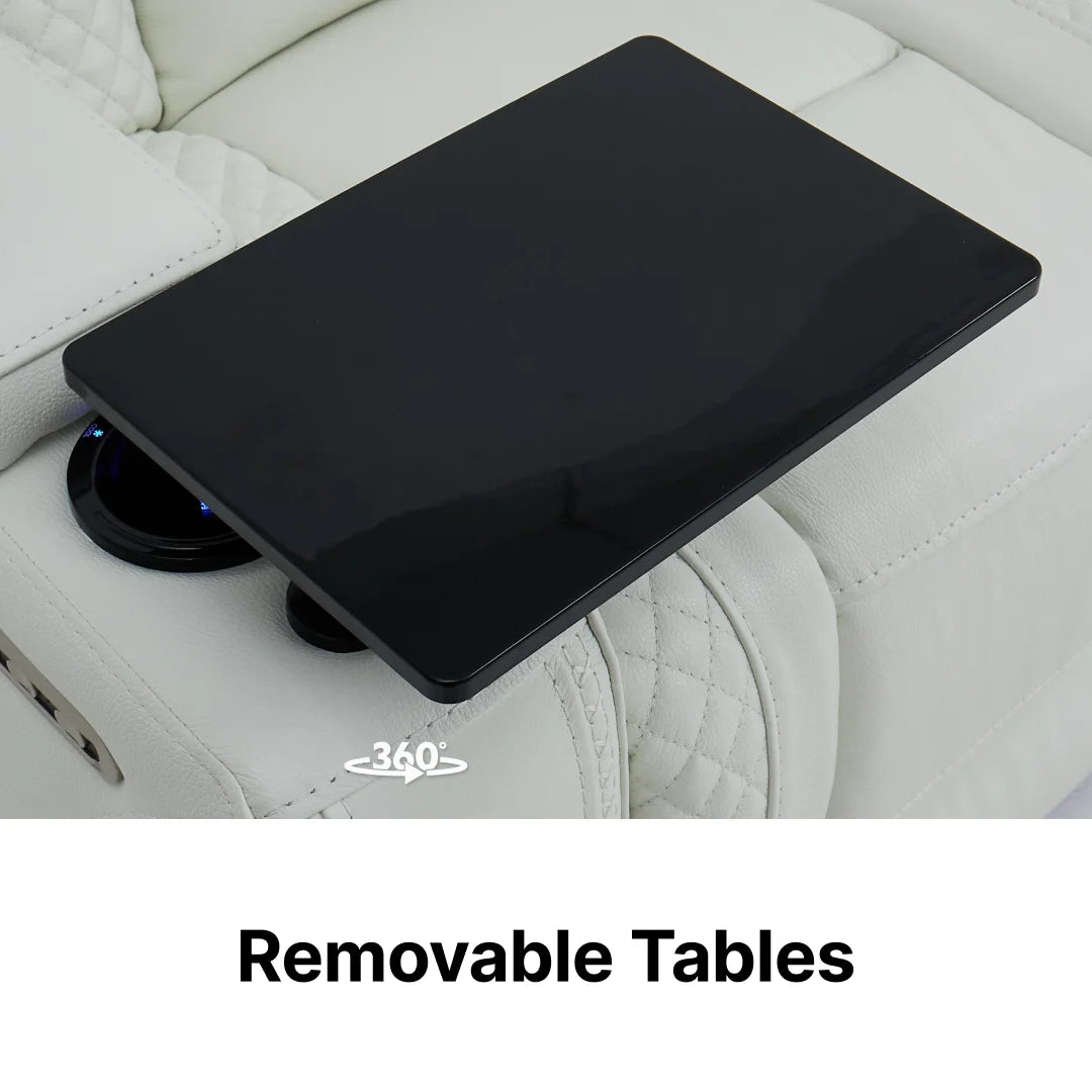 The 2 included tray tables slot easily into the outer armrests. When you are finished using them for your laptop or meal, they can be easily removed and stored away to maintain the sofa's stunning, minimalist profile.