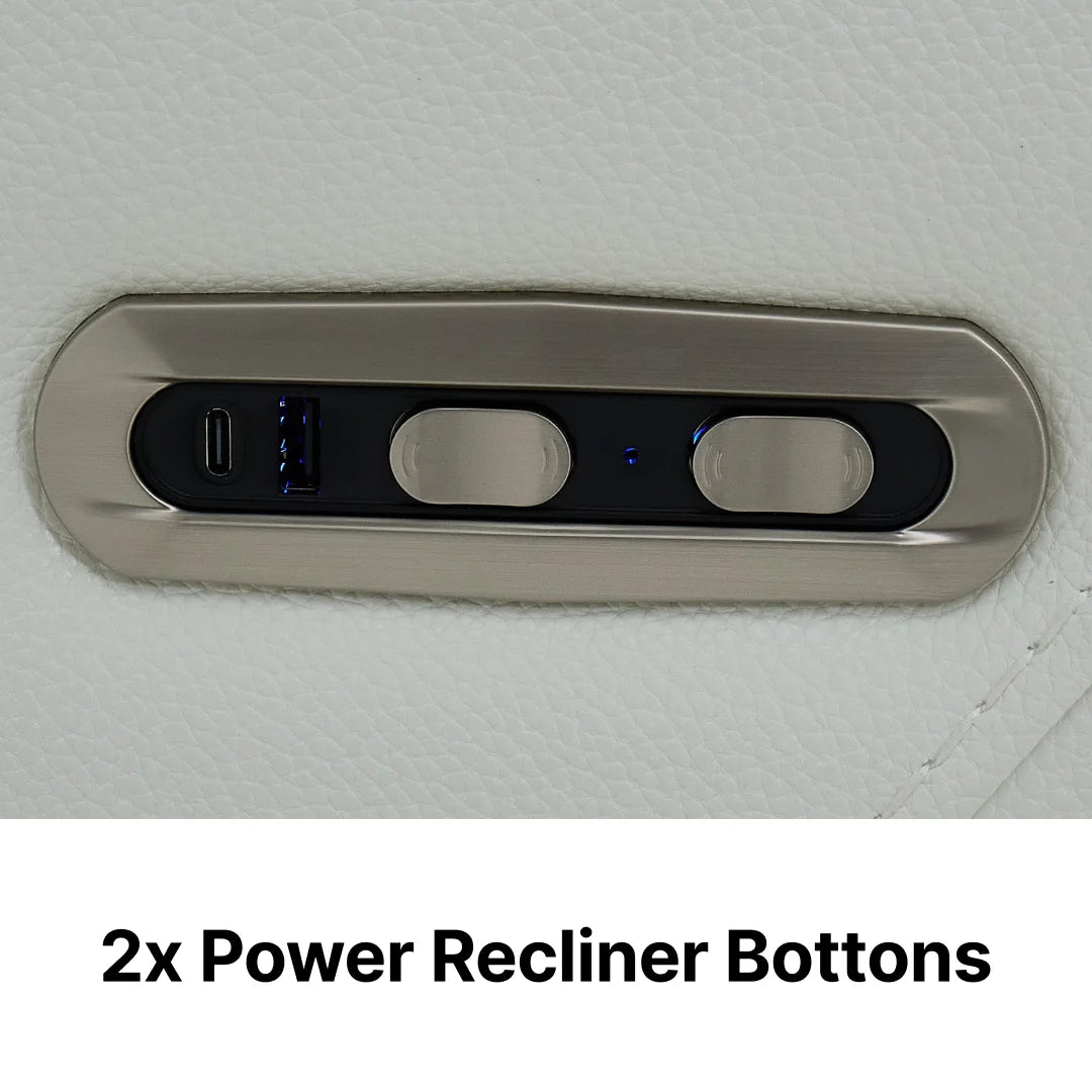 2x Power Recliners with USB+C Button – Smooth, whisper-quiet reclining with integrated fast-charging for all your devices.
