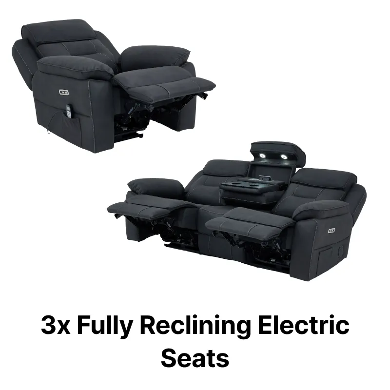 Designed to seamlessly integrate into your lifestyle, the Florence 3+1 Seater Electric Recliner Sofa Set is equipped with cutting-edge technology to enhance every moment spent on it.