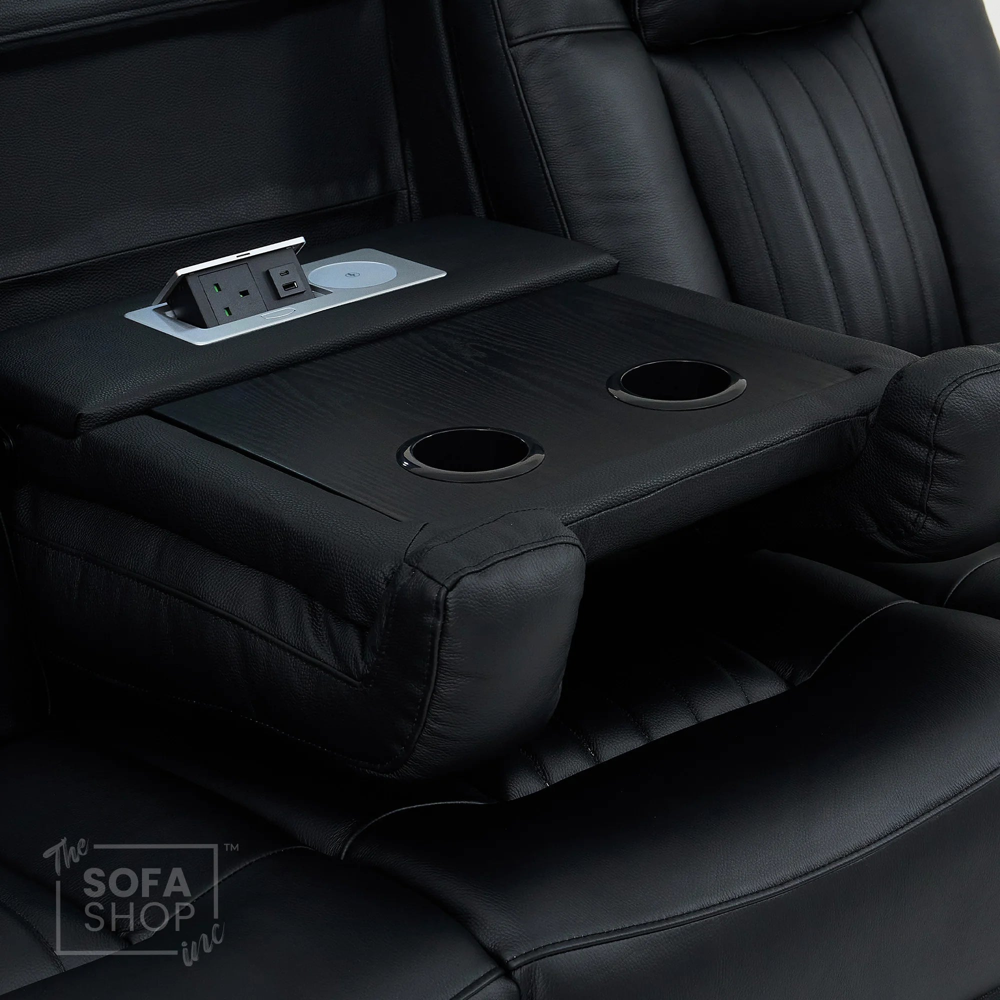 The Capri 3+2+1 Recliner Sofa Set in Black Real Leather is a showstopping suite designed for those who want it all — comfort, smart technology, and bold modern style. With a 3-seater, 2-seater, and 1-seater recliner chair, this versatile package provides flexible luxury seating for the entire household.