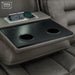The Cooling Cup Holders are exclusive to the 2-Seater Console. The 3-Seater features standard black cup holders on the drop-down table. This layout provides a specialized "VIP" zone for chilled beverages during long films.