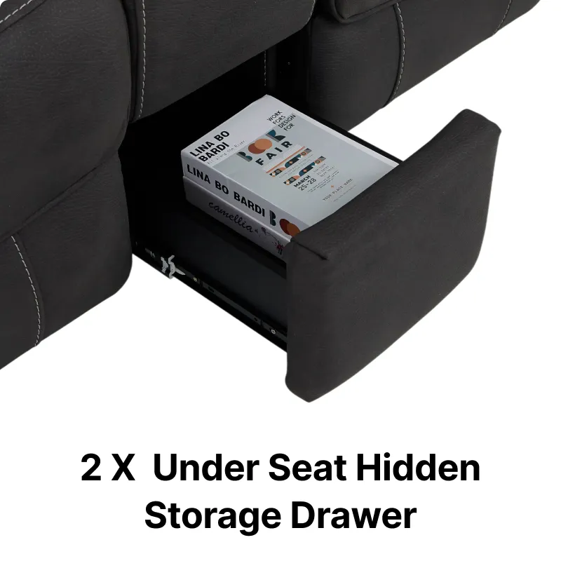 Paired with high-density foam cushions and a reinforced pinewood/plywood frame, this electric cinema sofa suite provides dependable support and long-lasting resilience.